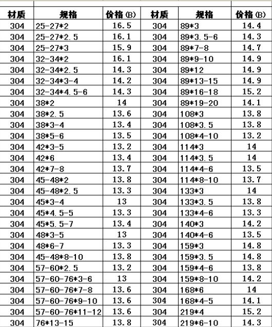鋼管價格 您當前位置:首頁 / 鋼管價格 / 小口徑304不銹鋼無縫管價格表